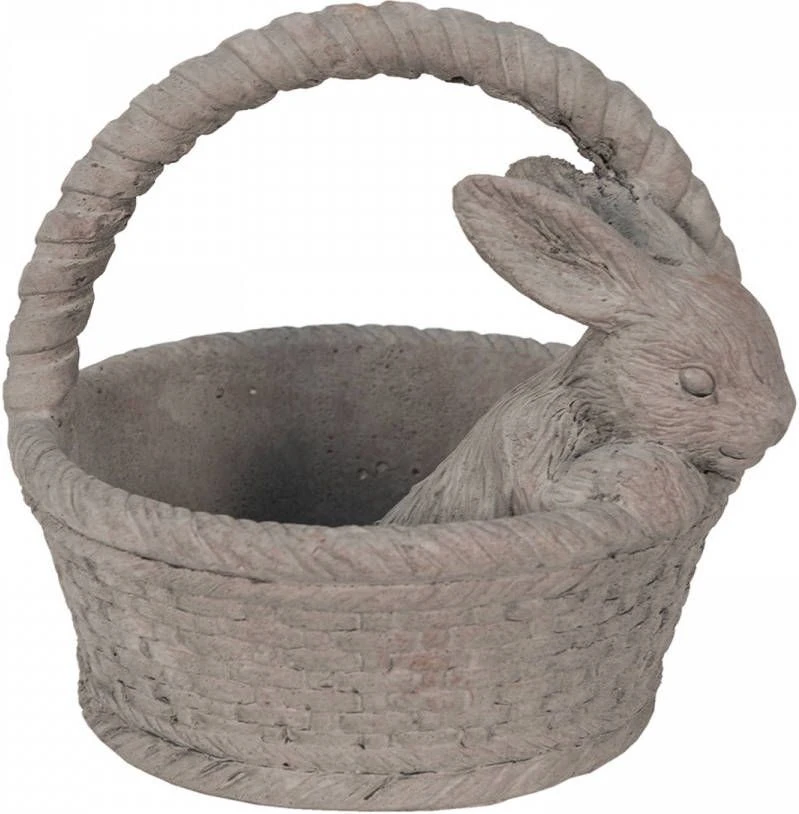 Decoratief grijs bruin stenen beeldje van een konijn in een mandje, van het merk Clayre & Eef. Woonaccessoires Paashaas PasenProductinformatie: