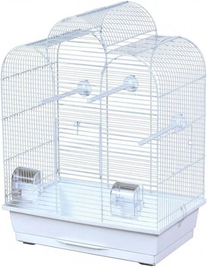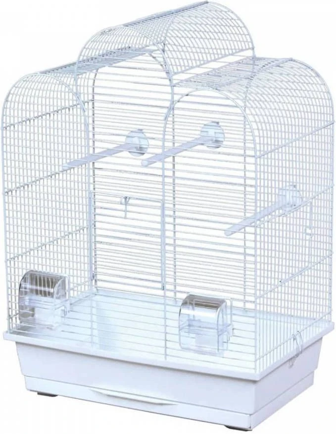 De Vogelkooi Dara wit van Flamingo is geschikt voor kleine parkieten. De kooi wordt geleverd met 2 voer- en drinkbakjes en 3 zitstokken.