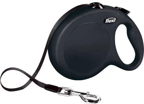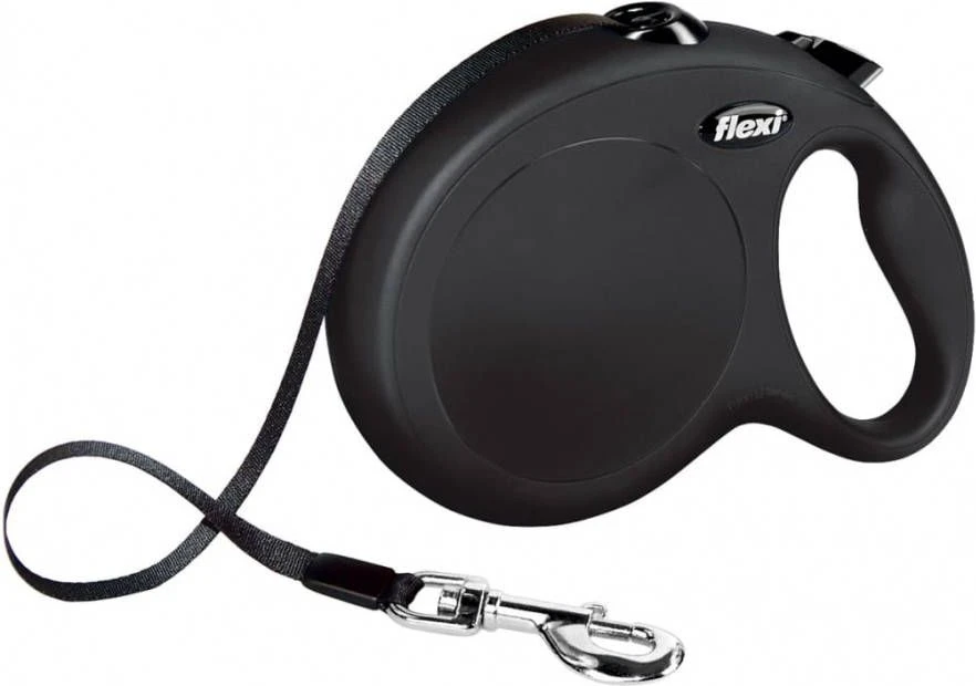 Flexi New Classic Lint XL Zwart Comfortabel remsysteem Geschikt voor honden tot 50 kg.De Flexi New Classic Lint rollijn heeft een ergonomische handgreep en een comfortabel remsysteem om eenvoudig te bedienen. De Flexi rollijn is ideaal voor gebieden waar je de hond verplicht moet aanlijnen en toch voldoende bewegingsvrijheid wil geven.Het soepel lopende oprolsysteem zorgt ervoor dat de lijn strak blijft. Met een lichte druk van de duim op de rem knop kunt u de hond moeiteloos corrigeren en terughalen.