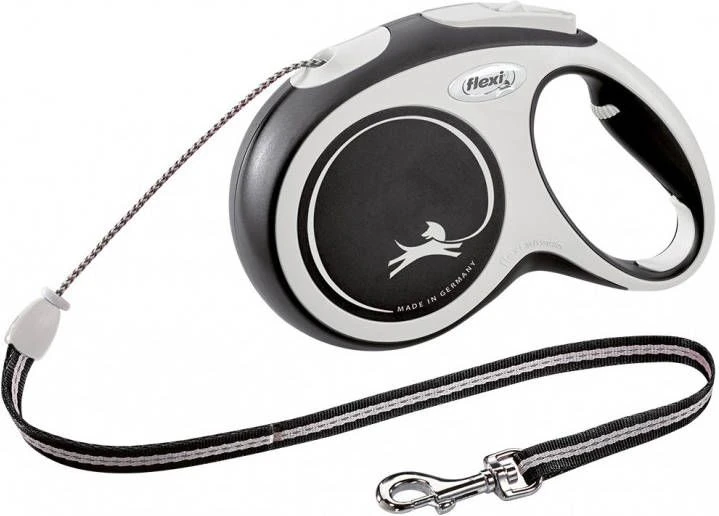 Bij Flexi kan je kiezen tussen lijnen met een koord en lijnen met tape. Het is een persoonlijke voorkeur welke variant je het fijnst vindt. In principe zijn beide soorten even sterk en veilig om te gebruiken. De New Comfort Cord bevat een koord.