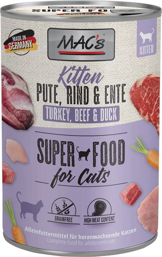 MAC’s MAC´, s Cat Kattenvoer 6 x 400 g Kitten(kalkoen, rund, eend )