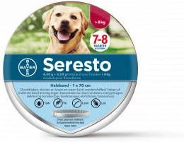 Seresto is waterbestendig en geurloos en beschermt je hond 7 tot 8 maanden tegen vlooien en teken. De band is er voor kleine en grote honden: Kleine hond: tot 8 kg lichaamsgewicht. Grote hond: vanaf 8 kg lichaamsgewicht.