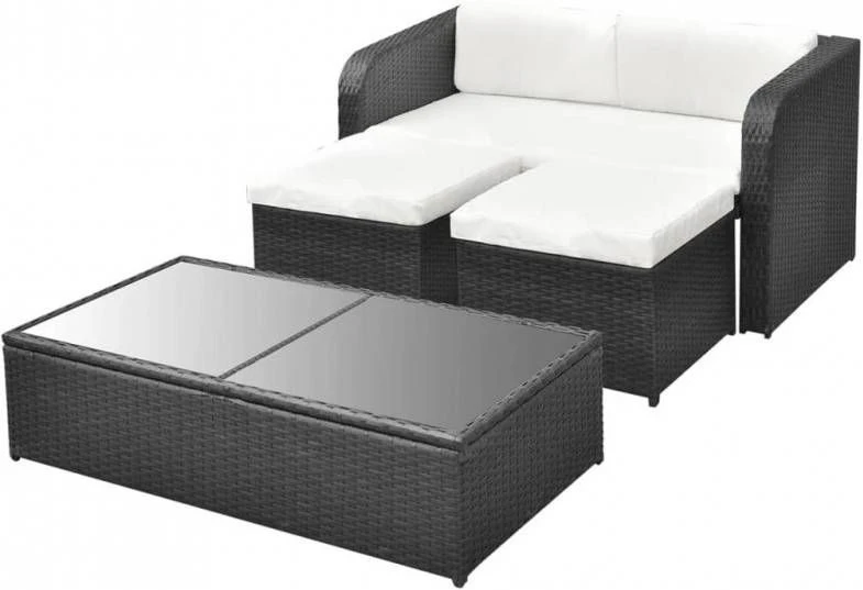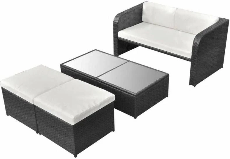 vidaXL 4-delige Loungeset met kussens poly rattan zwart
