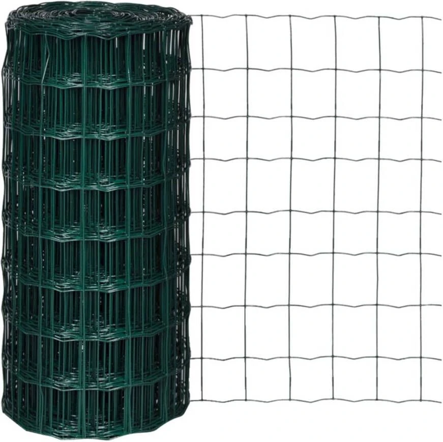 Deze euro hekwerkset is te gebruiken voor meerdere doeleinden zoals decoratie, simpele afbakening van het perceel of als ren voor kippen, puppies, konijnen, enz. Het is een hoogwaardig euro hek. De 2,2 mm groenzwarte PVC-coar.
