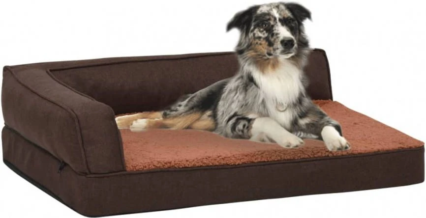 VidaXL Hondenbed Ergonomisch Linnen look 75×53 Cm Fleece Bruin